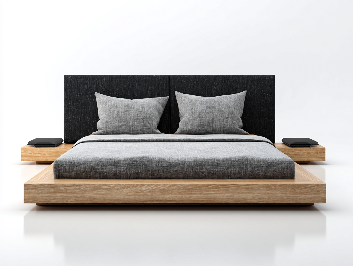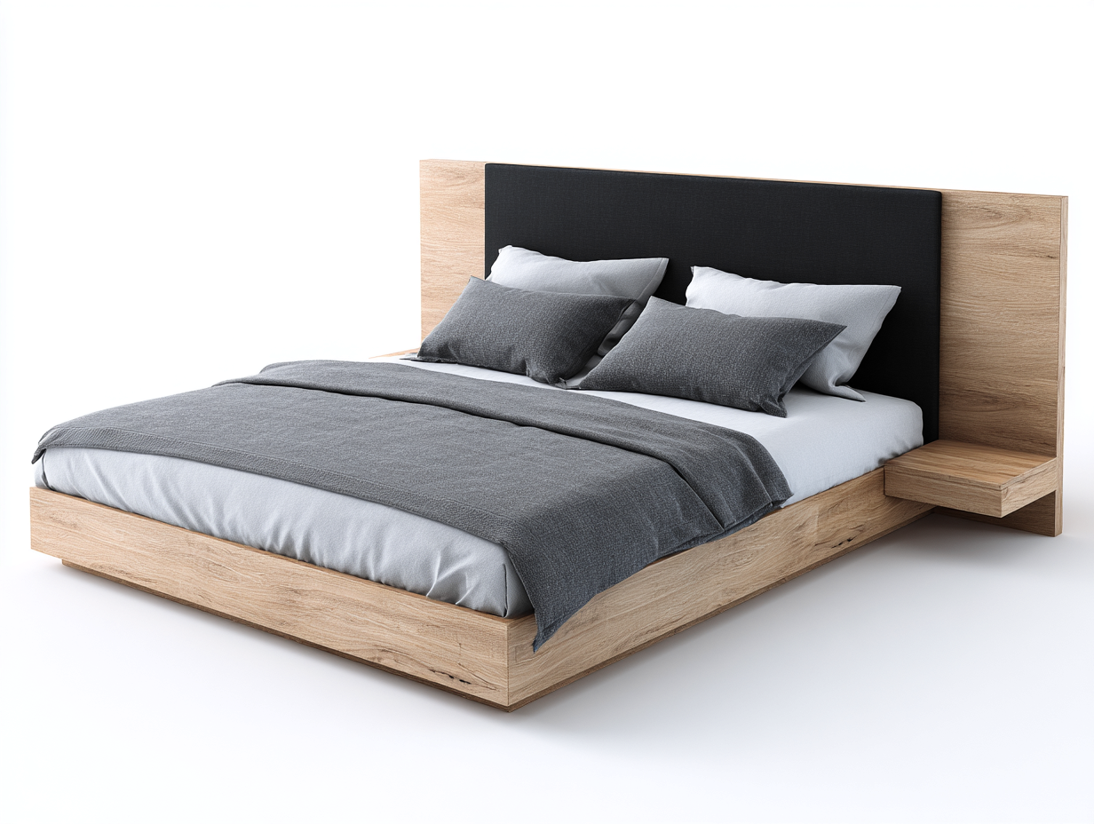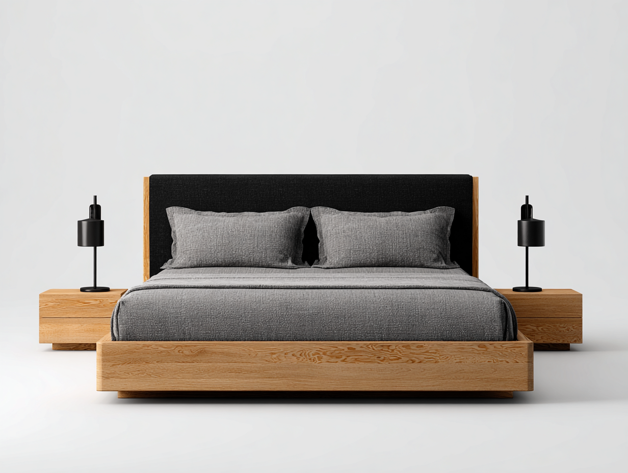 Double Beds - Wood-Fabric - 208x158x92 cm - Oak-Black - Modern Style