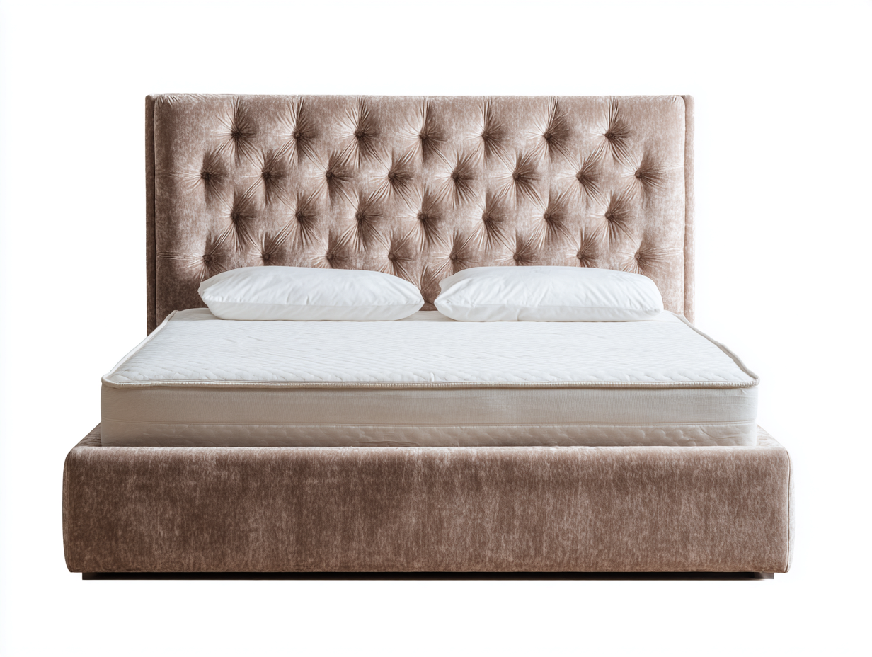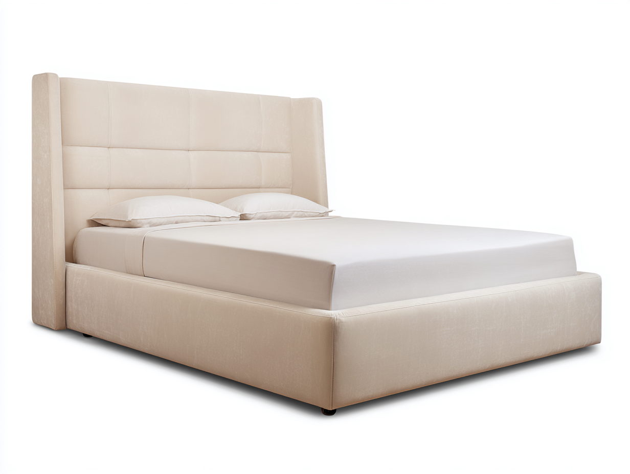 Double Beds - Wood-Fabric - 206x154x115 cm - Beige - Upholstered Style