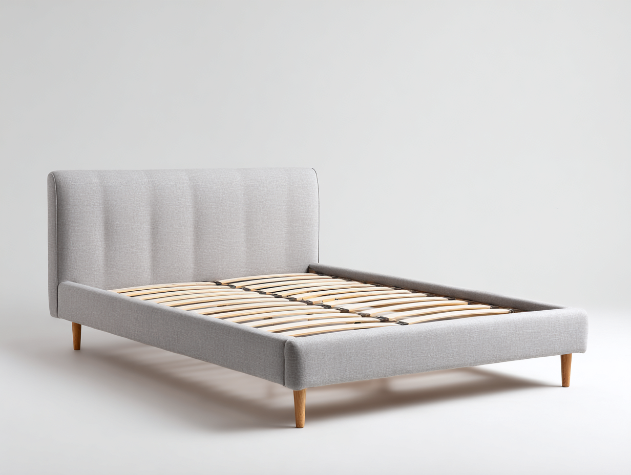 Double Beds - Wood-Fabric - 202x150x97 cm - Light Gray - Minimalist Style